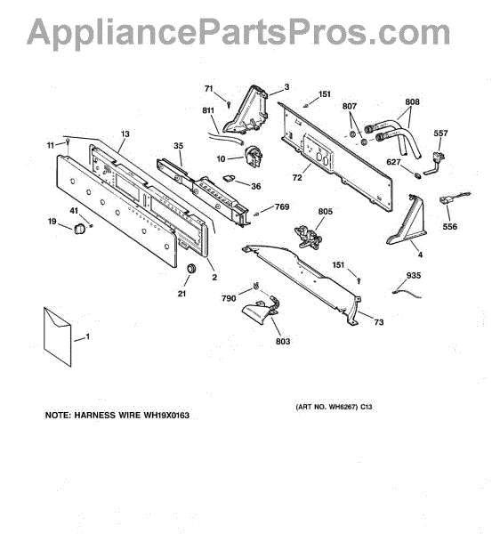 Parts for Ge WLE4000B1WW: 01 - Controls & Backsplash Parts