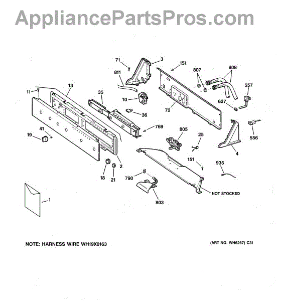 Parts for Ge WLE6500B3WW: 01 - Controls & Backsplash Parts