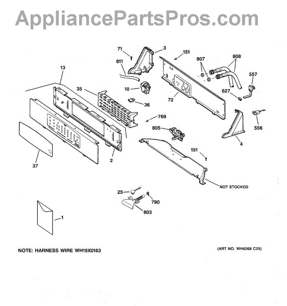 Parts for Ge WNRD2050D1WW: 01 - Controls & Backsplash Parts