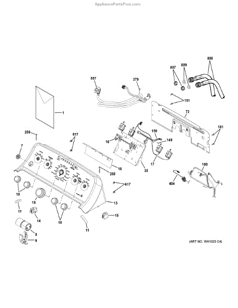 Parts for Ge GTW490ACJ1WS: Controls & Backsplash Parts