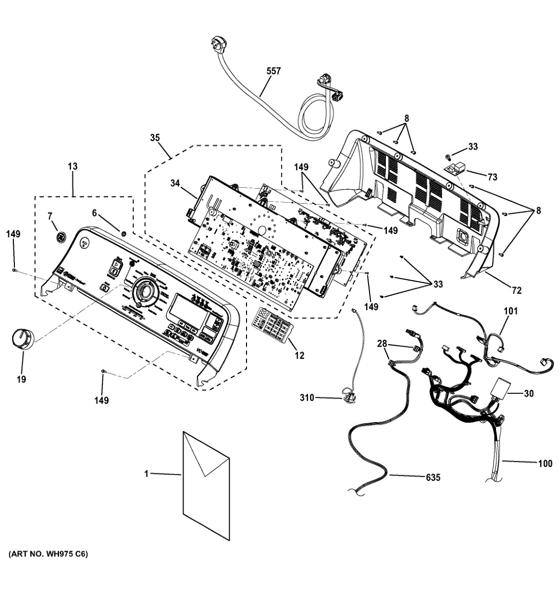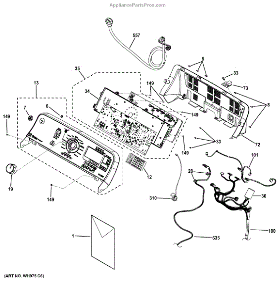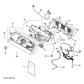 The User Interface Harness is an OEM part for GE washing machines. It connects control board electronics to the machine interface like buttons, lights and displays.
