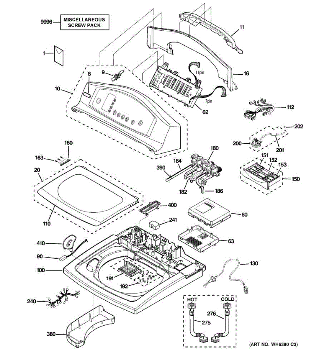Screw pack for washers. Secures internal components and panels. Replace if screws are stripped, missing, or damaged during appliance repair or maintenance.