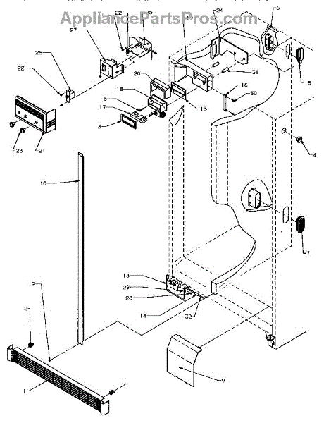 Parts for Amana SRD22S5E-P1190301WE: Controls & Cabinet Parts