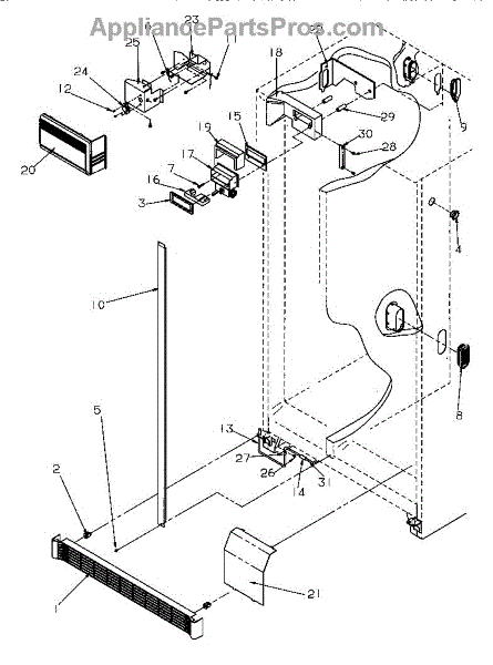 Parts for Amana SRDE27S3L-P1190601WL: Controls And Cabinet (Ref / Frz) Parts