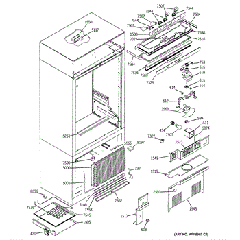 • Access the evaporator by removing the freezer rear panel; note wire routing and mounting