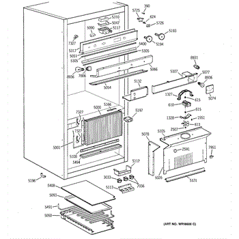 • Remove freezer shelves/ice bin and the rear panel to access the fan assembly