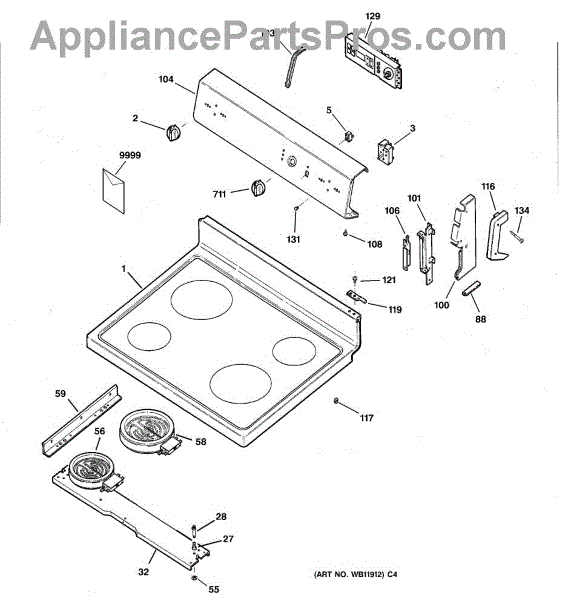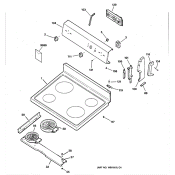 Parts for Ge JBP60BC2WH: 01 - Controls & Cooktop Parts