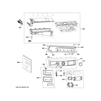 The Dispenser Drawer is an OEM part for GE washers. This drawer holds and dispenses detergent, fabric softener, and other laundry additives during the washing cycle. The dispenser drawer ensures the proper distribution of laundry products in your GE washer. It features compartments and mechanisms that release the right amount of detergent and fabric softener at the appropriate times, ensuring cleaning and fabric care.