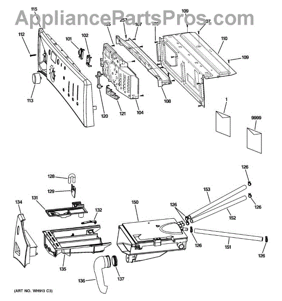 Parts for Ge GFWN1100L4WW: 01 - Controls & Dispenser Parts