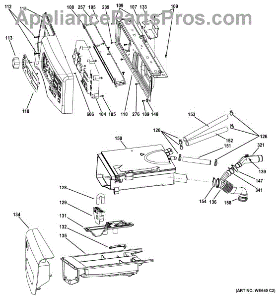 This siphon pipe is a washer drain component that forms part of the air-break assembly. It helps prevent unintended siphoning and backflow so the tub drains correctly without pulling water back in or continuously draining. What it does: