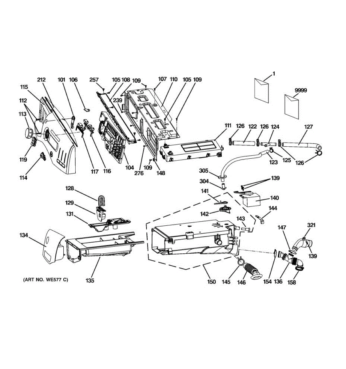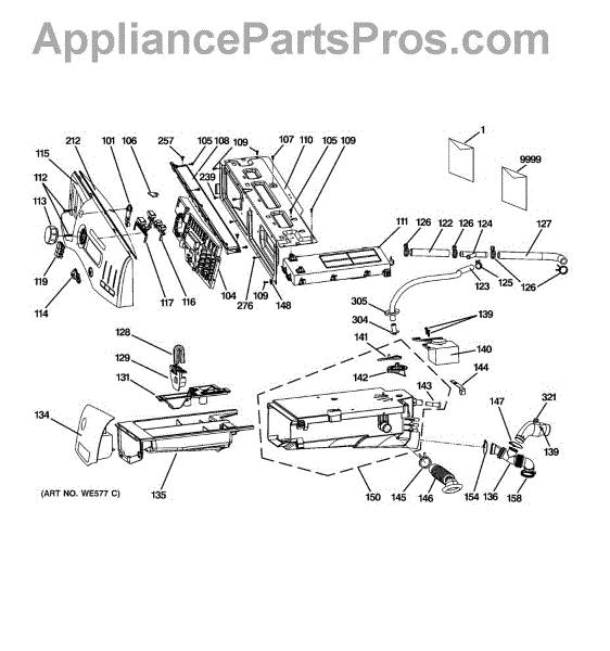 Water inlet pipe for washers. Routes water from supply line to internal components. Replace if cracked, leaking, or damaged for proper water flow.