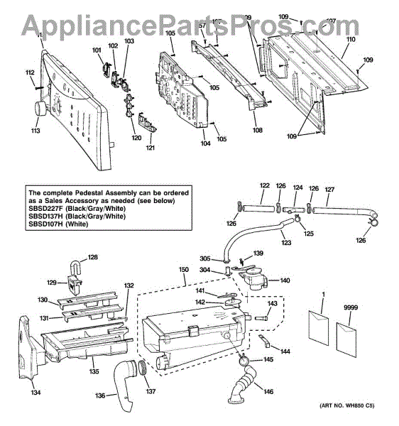 Parts for Ge WBVH6240H0WW: 01 - Controls & Dispenser Parts