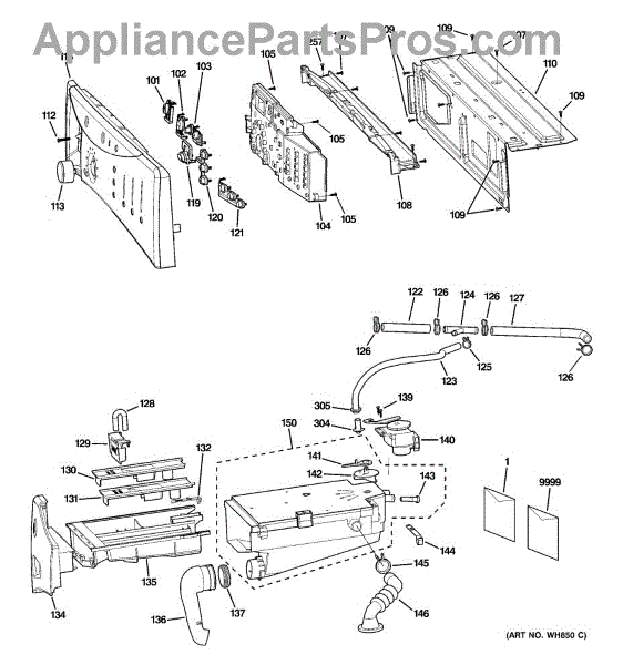 Parts for Ge WCVH6800J4WW: 01 - Controls & Dispenser Parts