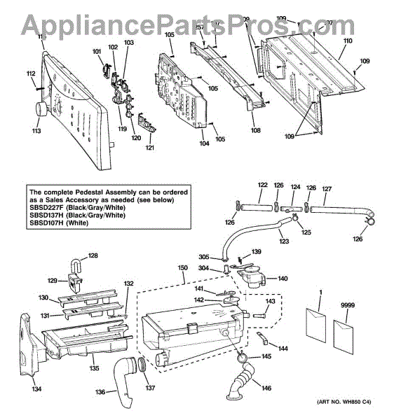 Parts for Ge WHDVH660H0GG: 01 - Controls & Dispenser Parts