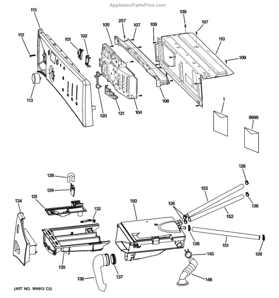 This siphon pipe is a washer drain component that forms part of the air-break assembly. It helps prevent unintended siphoning and backflow so the tub drains correctly without pulling water back in or continuously draining. What it does: