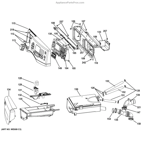 This siphon pipe is a washer drain component that forms part of the air-break assembly. It helps prevent unintended siphoning and backflow so the tub drains correctly without pulling water back in or continuously draining. What it does: