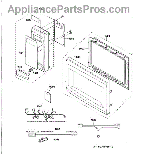 Parts for Ge JE1160WC01: 02 - Controls, Door & Wiring Parts