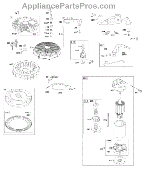 This starter drive is a part of the starter system that helps to engage the engine. When it is energized, the gears are activated and turned, which engages the flywheel and starts the engine. This is a critical step in the firing process and lawn equipment will not run if the starter goes bad. Over time, gears can wear out and other damage can occur, resulting in a need for a replacement of the entire assembly or certain parts. It is generally easier to replace the entire assembly. This OEM replacement electric starter drive kit is designed for use with select Briggs & Stratton engines that can be found on various equipment, including lawn tractors and lawn mowers. The kit features a new style starter along with a retainer, composite drive gear, starter gear, return spring, retention plate, clutch drive, and the washer and clip to ensure a secure attachment of all parts. It is important to disconnect the spark plug before working on engine components. This starter drive kit is sold as a single unit and comes with a total of nine pieces.
