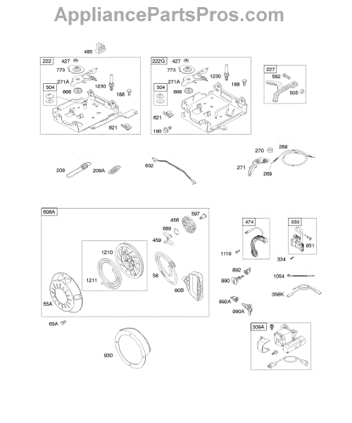 Parts for Briggs & Stratton 12C314-0208-E1: Controls, Electric Starter, Governor Spring, Ignition, Rewind Starter Parts