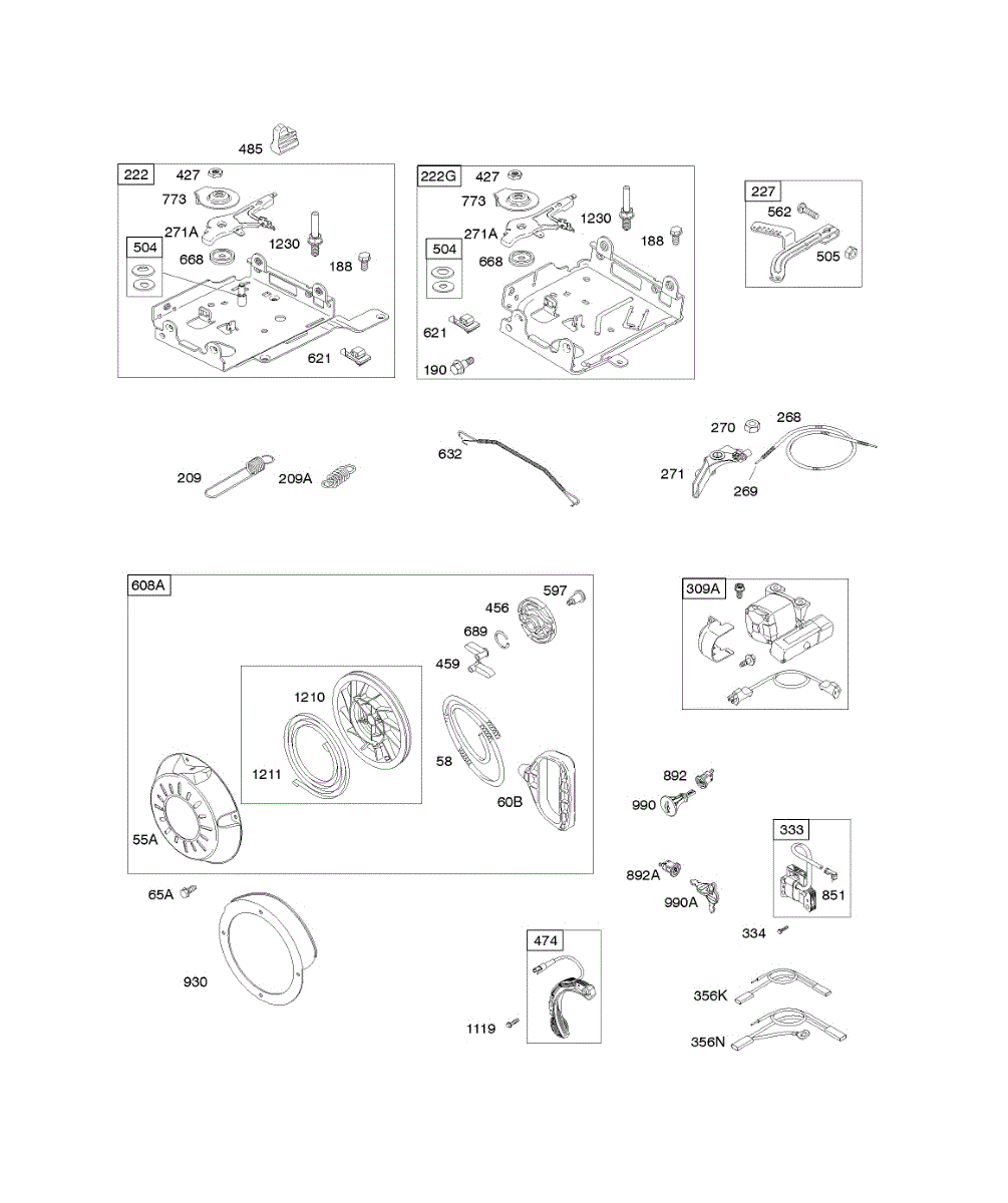 Parts for Briggs & Stratton 12D313-0017-E1: Controls, Electric Starter, Governor Spring, Ignition, Rewind Starter Parts