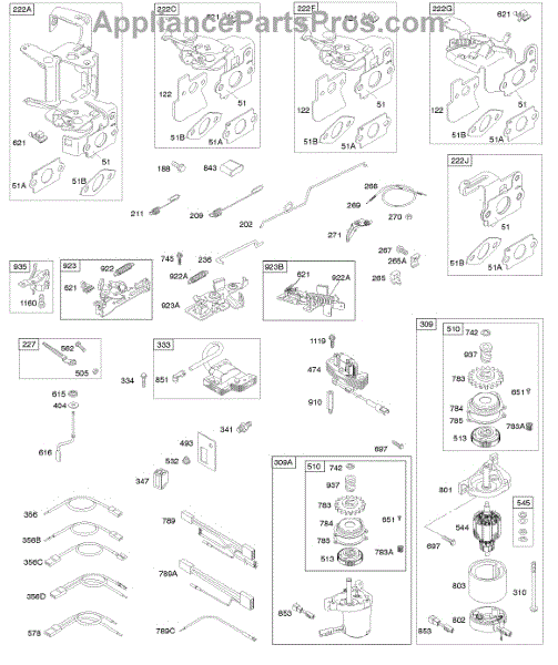 Parts for Briggs & Stratton 12Q502-0127-B1: Controls, Electric Starter, Flywheel Brake, Governor Spring, Ignition Parts