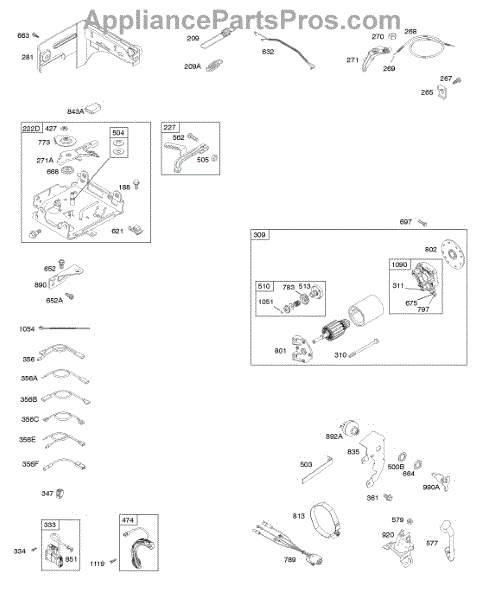 Parts for Briggs & Stratton 12S102-0110-F8: Controls, Electric Starter, Governor Spring, Ignition Parts