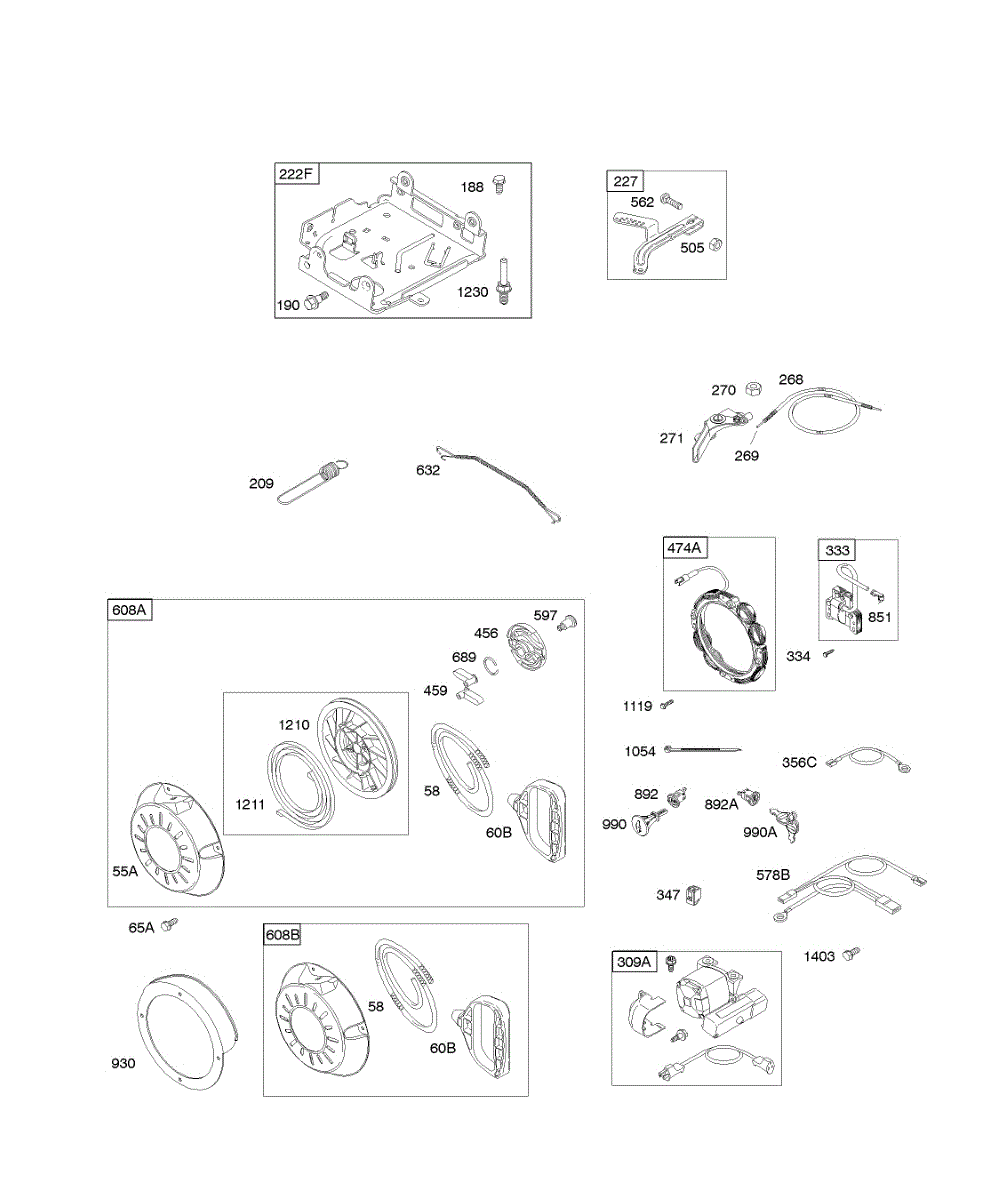 Parts for Briggs & Stratton 15Z314-0112-E1: Controls, Electric Starter, Governor Spring, Ignition, Rewind Starter Parts