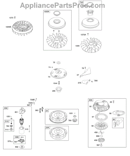 Parts for Briggs & Stratton 21A977-0199-E1: Controls, Electric Starter, Flywheel, Rewind Starter Parts