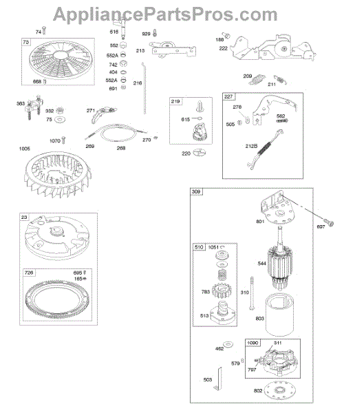 Parts for Briggs & Stratton 403677-0343-E1: Controls, Electric Starter, Flywheel, Governor Spring Parts