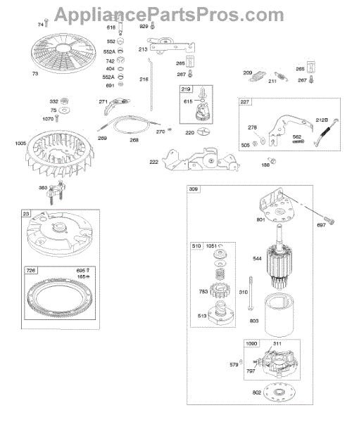 This starter drive is a part of the starter system that helps to engage the engine. When it is energized, the gears are activated and turned, which engages the flywheel and starts the engine. This is a critical step in the firing process and lawn equipment will not run if the starter goes bad. Over time, gears can wear out and other damage can occur, resulting in a need for a replacement of the entire assembly or certain parts. It is generally easier to replace the entire assembly. This OEM replacement electric starter drive kit is designed for use with select Briggs & Stratton engines that can be found on various equipment, including lawn tractors and lawn mowers. The kit features a new style starter along with a retainer, composite drive gear, starter gear, return spring, retention plate, clutch drive, and the washer and clip to ensure a secure attachment of all parts. It is important to disconnect the spark plug before working on engine components. This starter drive kit is sold as a single unit and comes with a total of nine pieces.