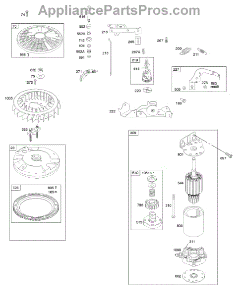 Parts for Briggs & Stratton 446877-0026-E1: Controls, Electric Starter, Flywheel Parts