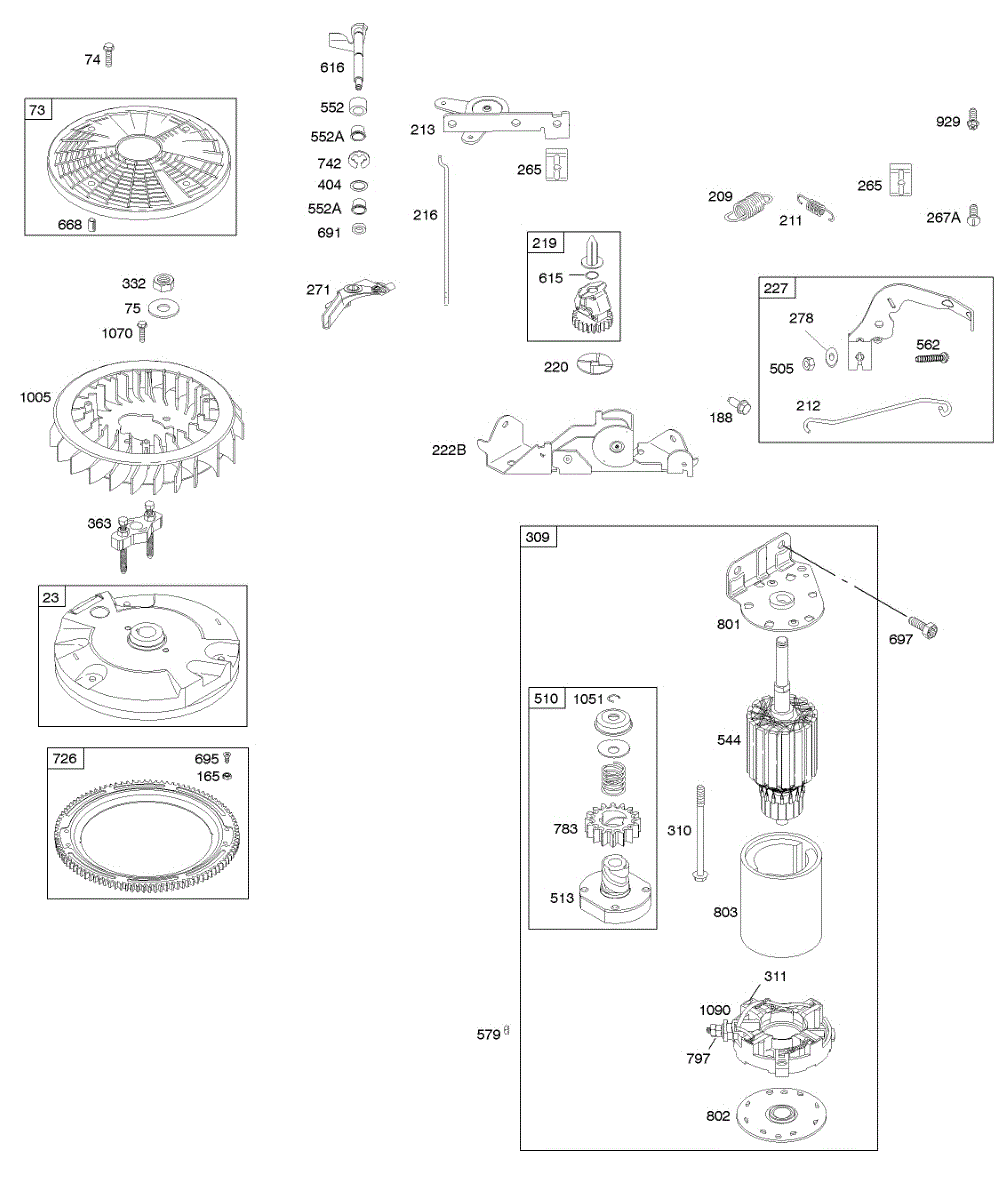 Parts for Briggs & Stratton 446977-0505-E1: Controls, Electric Starter, Flywheel Parts