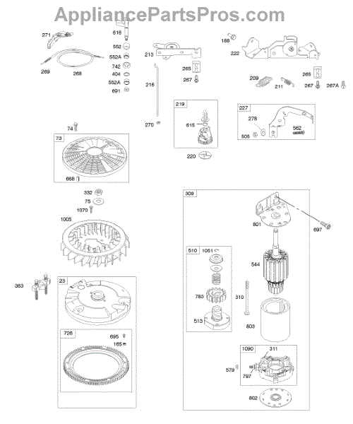 Parts for Briggs & Stratton 44N777-0122-E1: Controls, Electric Starter, Flywheel Parts