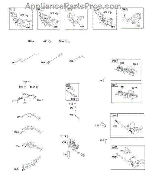 Parts for Briggs & Stratton 12J902-0143-01: Controls, Electrical, Flywheel Brake, Governor Spring, Ignition Parts