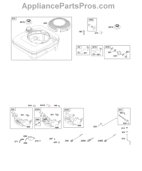 Parts for Briggs & Stratton 12H702-0621-01: Controls, Fuel Supply, Governor Spring Parts