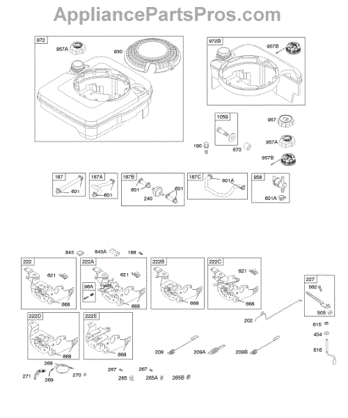 Parts for Briggs & Stratton 12H802-1849-B1: Controls, Fuel Supply, Governor Spring Parts