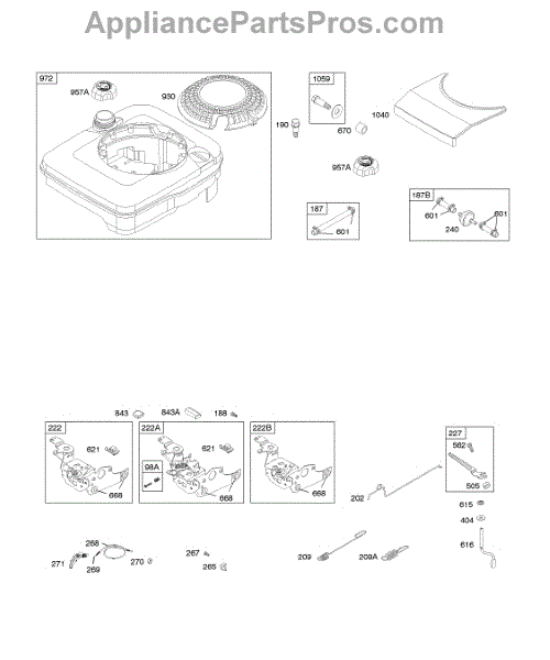 Parts for Briggs & Stratton 128712-4705-A1: Controls, Fuel Tank, Governor Spring Parts