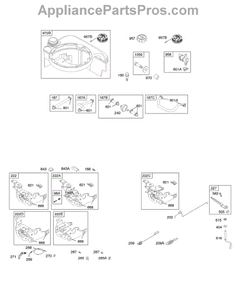 Parts for Briggs & Stratton 128802-1951-E1: Controls, Fuel Tank, Governor Spring Parts