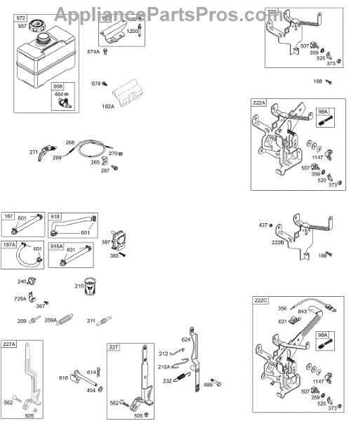 Parts for Briggs & Stratton 197417-1152-E1: Controls, Fuel Tank Group, Governor Springs Parts