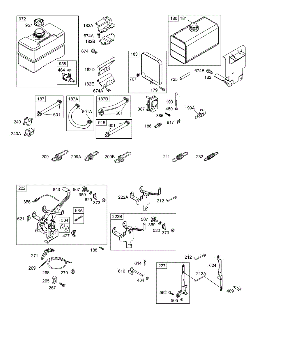 Parts for Briggs & Stratton 250412-0101-01: Controls, Fuel Tank, Governor Springs Parts