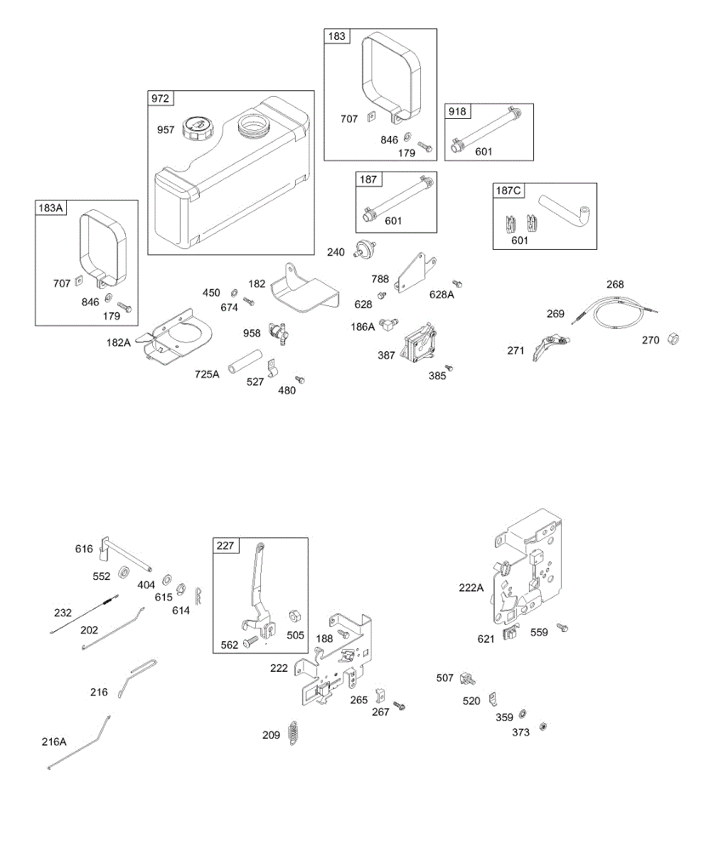 Parts for Briggs & Stratton 283707-0217-02: Controls, Fuel Tank, Springs Parts