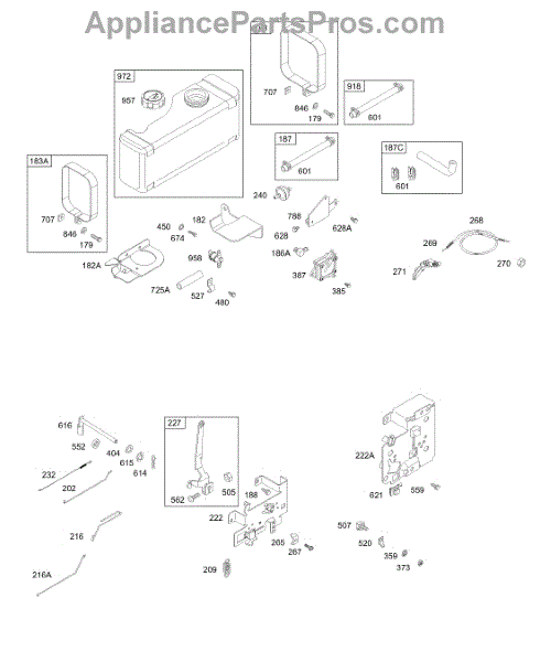 Parts for Briggs & Stratton 283707-1217-E1: Controls, Fuel Tank, Springs Parts