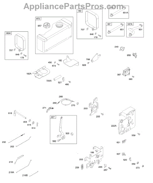 Parts for Briggs & Stratton 28D707-0025-01: Controls, Fuel Tank, Springs, Hoses, Fuel Pump Parts