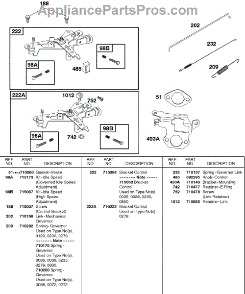 Parts for Briggs & Stratton 085432-0278-B1: Controls, Governor Spring Parts