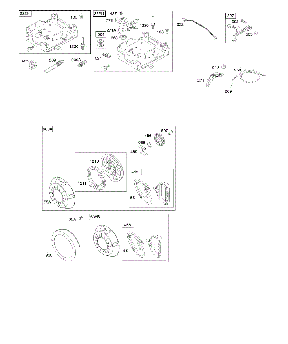 Parts for Briggs & Stratton 12D103-0131-E8: Controls, Governor Spring, Rewind Starter Parts