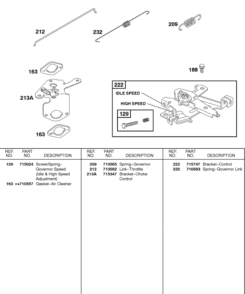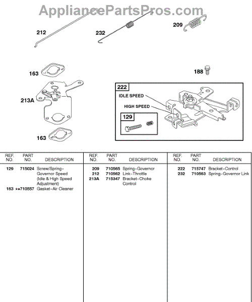 Parts for Briggs & Stratton 247437-0112-E1: Controls, Governor Spring Parts