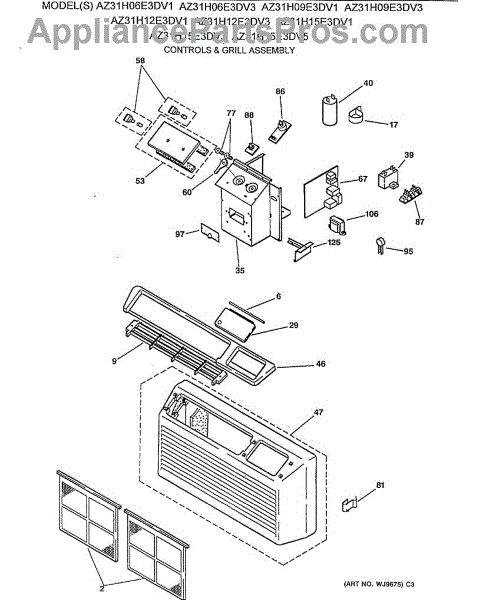 Parts for Ge AZ31H06E3DV3: 01 - Controls & Grill Assembly Parts