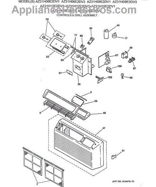 Parts for Ge AZ31H12E2DV3: 01 - Controls & Grill Assembly Parts