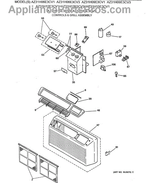 Parts for Ge AZ31H12E3CV1: 01 - Controls & Grill Assembly Parts
