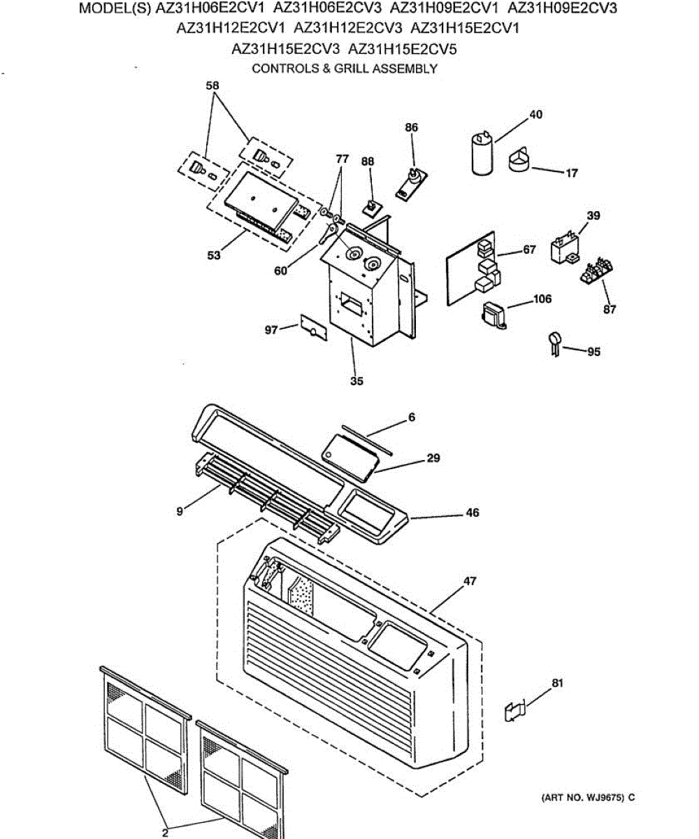 Parts for Ge AZ31H15E2CV3: 01 - Controls & Grill Assembly Parts